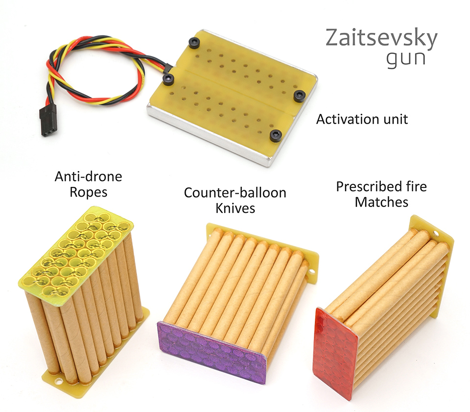 ![]() Multi-barrel ammunition that allows a racing drone to be turned into an interceptor The invention relates to Counter-Unmanned Aircraft Systems and Hard Kill solutions. The task is to defeat the most common drones with protection against jamming. The ammunition is used on a drone interceptor to combat other drones. Gun allows you to attack several times in one flight and go back. The fired propeller snares entangle the rotor of most unmanned aerial vehicles weighing up to 3 kg and some targets up to 10 kg. For simplicity, I can say that the gun knocks down all multicopters with a camera, which is almost all the drones you might encounter in urban life. The two-cassette weapon weighs 120 grams and is loaded with 32 shots. Gun with dozens of shots weighs several tens of times less than a target it hits. The low weight of the weapon allows it to be used on small and fast interceptor drone. Using a lightweight reusable interceptor is cheaper than using missiles. The interceptor has a greater range than ground cannons or lasers. Other drones with an attached rope or net has limited maneuverability. This ammunition allows a racing drone or another carier to shot down observers, coordinators, couriers, light bombers and other targets. The weapon can be used with ammunition for other tasks. Knife cassettes allow you to hit balloons. Cassettes with incendiary comets allow firefighters to carry out controlled burning of dry fields. The ammunition is attached to the activation unit. The activation unit is attached to the weapon carrier. The ammunition controller can be connected to a remote control or flight controller. Ammunition comprises multiple charges with separate electric activation for a multiple attack possibility. The rate of fire is 1000 shots per minute. The multi-shot gun fires like a machine gun, allowing you to hunt moving targets. Individual shots form a continuous air barrage. The range of aimed shooting is 3 meters. Energy of the target's engine is used to block it, so muzzle energy can be small. The arresting rope forms an aerial barrage from the moment the shot is fired, it allows the target's propeller to become entangled at a short distance. Twisting the rope increases the likelihood of entanglement on the target. The design of the projectile reduces the likelihood of ricochet. Projectile filled with extra length of rope, it increases the likelihood of entangling the target's propeller. The ammunition is not dangerous to humans and is classified as pyrotechnics. The weapon can be attached to your RC model to destroy drones that are watching you. You can also hunt delivery drones in your area. This is a joke, don't do it :) Also, I developed dart cassettes for hitting air balloons and match cassettes for initiating prescribed fires. ![]() ![]() Demonstration. Contact me to discuss location, availability and price. For demonstration, I use FPV drone. FPV races can be used to attract attention. Air combat is an old sport, but different equipment was previously used. When automatic guidance systems become more reliable, the demand for weapons for interceptor drones will increase. This demo is shot in stereoscopic video format. To view, use a 3D glasses for your smartphone. Order. For 300 g of gold I will make a set of equipment in three months. The set includes: 1024 shots (64 cassettes); 1 controller; 2 simulation boards; screws and dampers; voltage stabilizer. This is an offer for a potential long-term partner. In my opinion, 1000 shots is the minimum to familiarize yourself with the capabilities of the weapon and to prepare a trained drone operator. Investment. You can invest in product development. The product is ready for use, but there is no limit to perfection. For large-scale production, special robots will need to be developed. Today my technology allows one employee to make 1,000 shots a month. If the weapon becomes popular, then production can reach a volume of 1 billion shots in 10 years (speculation by analogy with other cartridges). License. I am ready to organize licensed production in your country. If you already have a workshop, then it will take me three months to prepare tools, train two workers and start production. Exclusive license price is 6 kg of gold (within 6 months I will transfer the equipment, start production and train employees). The price of a non-exclusive license is 3 kg of gold (electronic documentation). Aleksey Zaitsevsky |